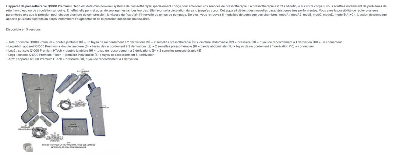 Pressothérapie Q1000 Premium Complete – Medor Medical Appareil professionnel complet pour drainage lymphatique La pressothérapie Q1000 Premium Complete de Pla