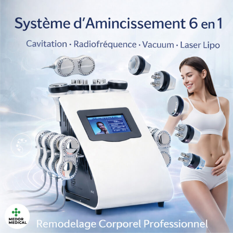Le Biotronix 6-en-1 est un appareil minceur professionnel combinant plusieurs technologies avancées pour la réduction des graisses, le raffermissement de la peau et le remodelage de la silhouette. Il associe cavitation ultrasonique, radiofréquence (RF), aspiration sous vide et lipolaser dans un seul équipement performant.Technologie 6-en-1 haute performance